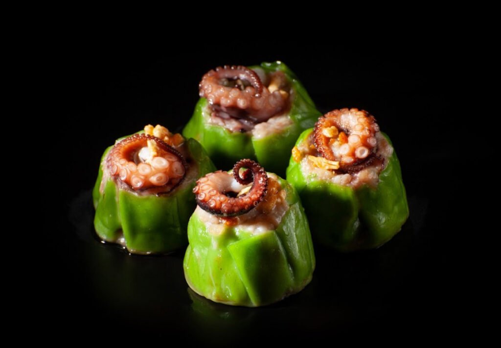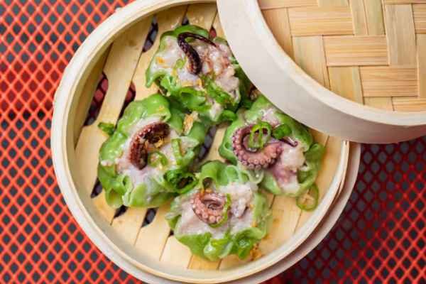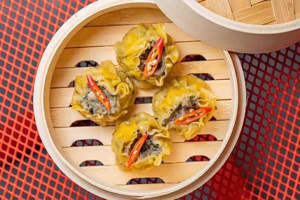 Spicy and tangy tom yum with chicken, shrimp, and lemongrass filled in dumplings.